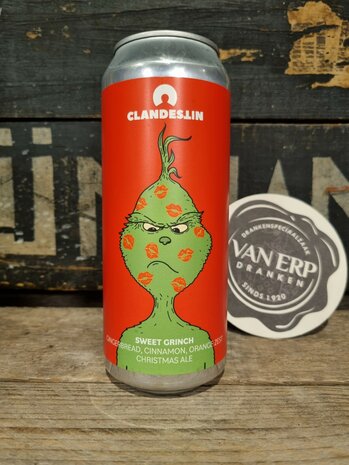Clandestin Beer Sweet Grinch Christmas Ale. Met peperkoek, kaneel en sinaasappelschil. Een echte winterse smaakbeleving. Perfect voor de kerstperiode!