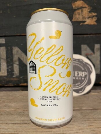 Vault City Brewing Yellow Snow Sour. Ze zeggen dat je nooit gele sneeuw moet eten, maar we hebben nog nooit gehoord dat mensen het niet zouden drinken... Deze feestelijke sour met gebak leunt op de grap (zonder er de spot mee te drijven). In plaats daarvan vind je een verbluffende citrusfruit-kokos sour met pittig citroensap over romige kokos en een vleugje luchtige meringue.